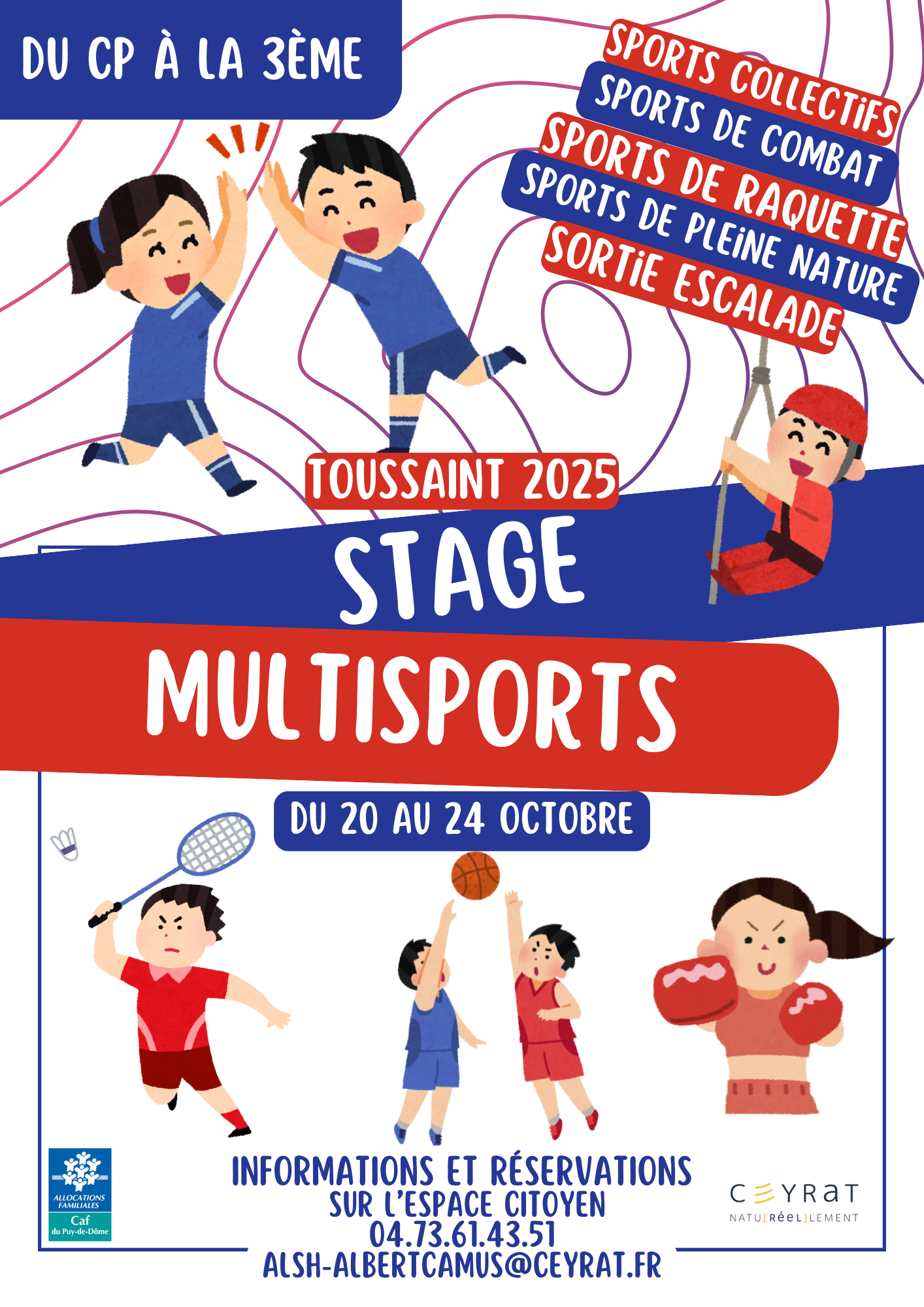 Dans le cadre des activités sportives et culturelles, la commune de Ceyrat organise des stages pour les collégiens pour les vacances d'Automne 2025 :