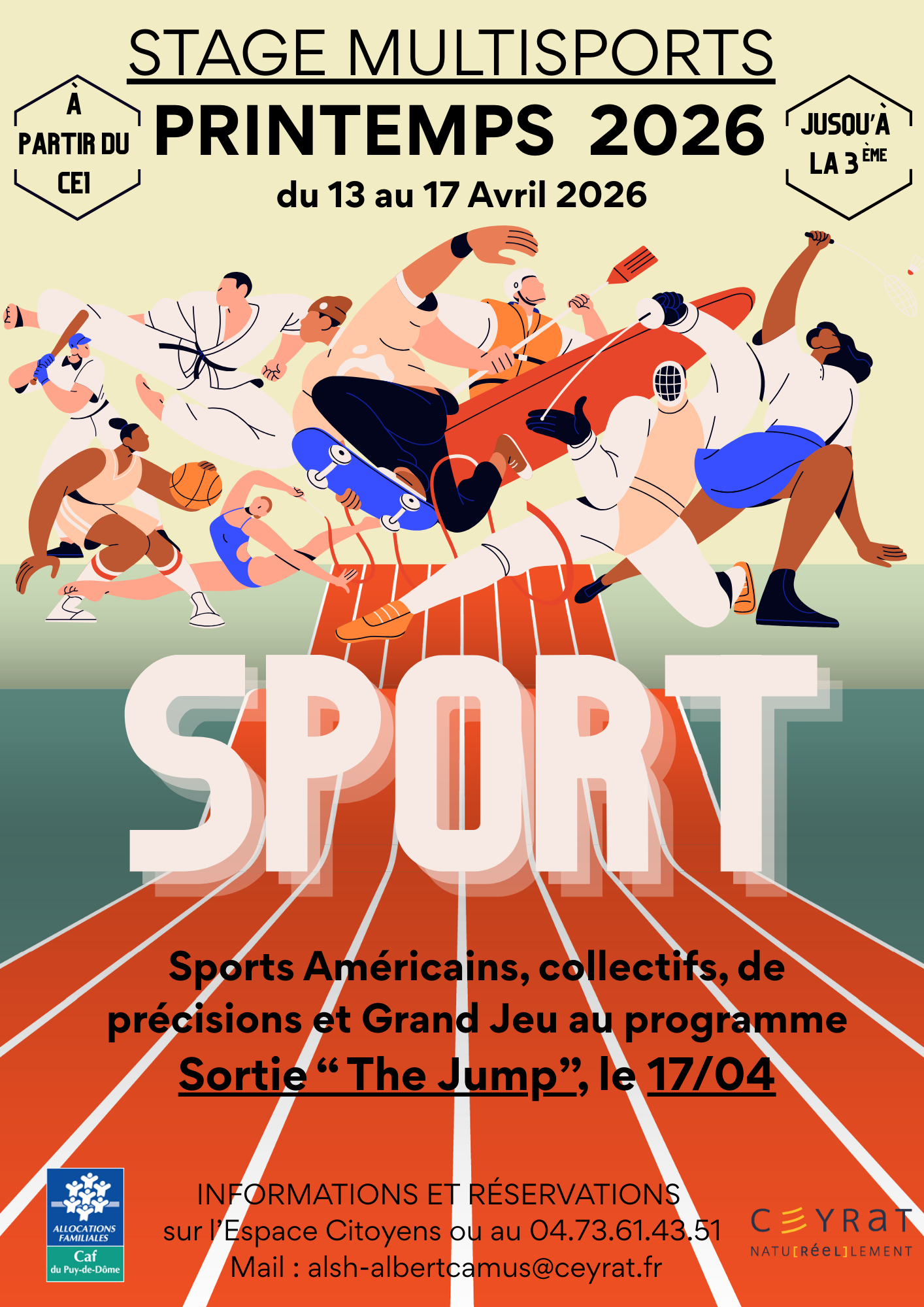 Dans le cadre des activités proposées aux jeunes, la commune de Ceyrat organise des stages thématiques (multisports et break dance) aux vacances de printemps 2026.