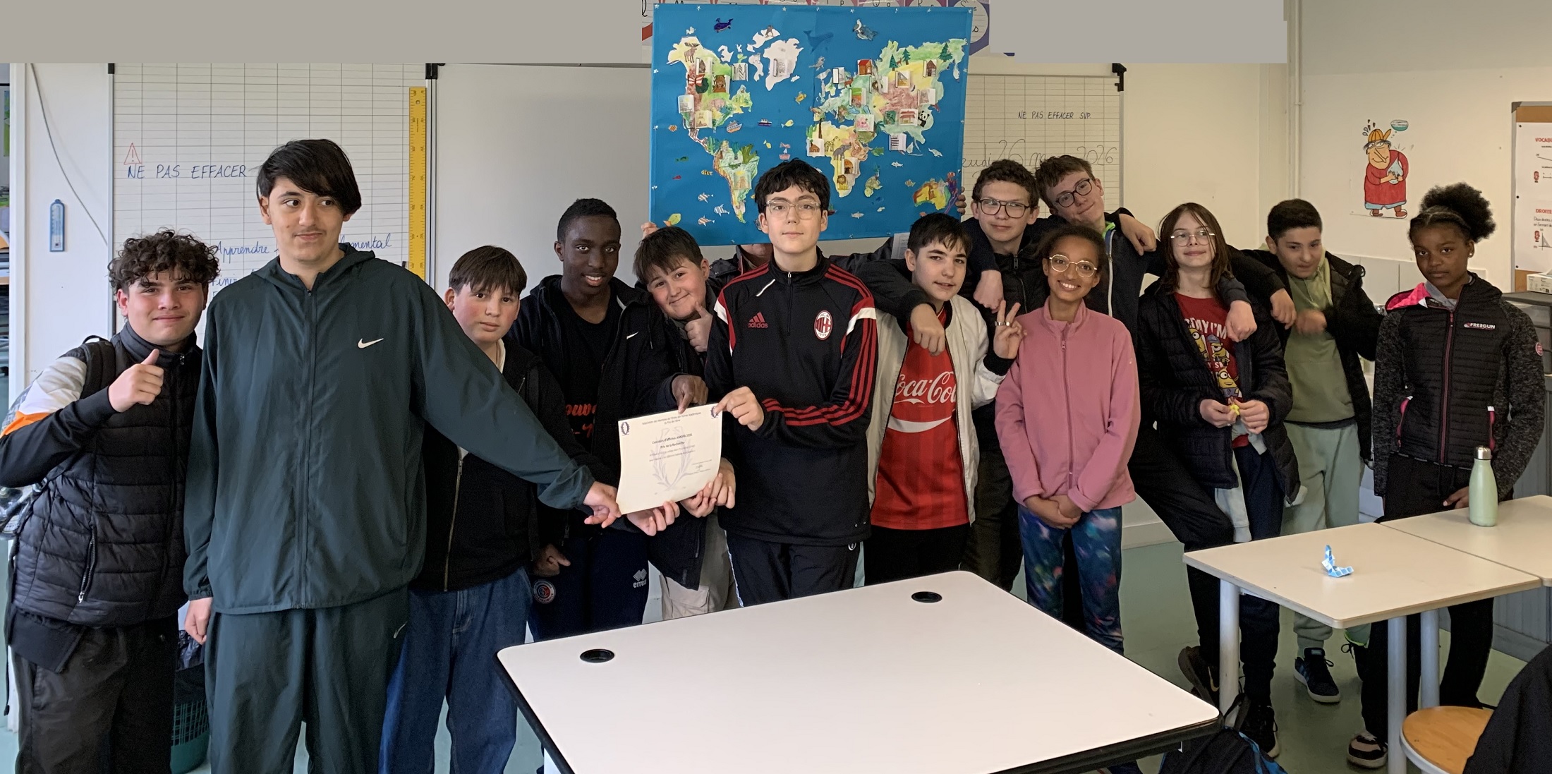 Les élèves du dispositif ULIS reçoivent le prix de la Recherche.